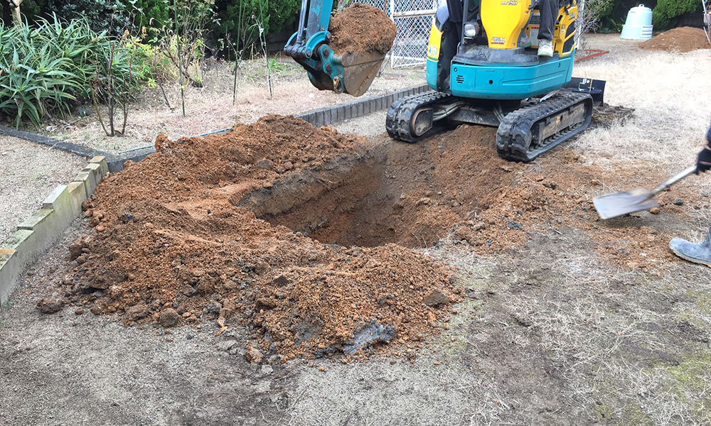 ユンボで穴を掘っていきます。