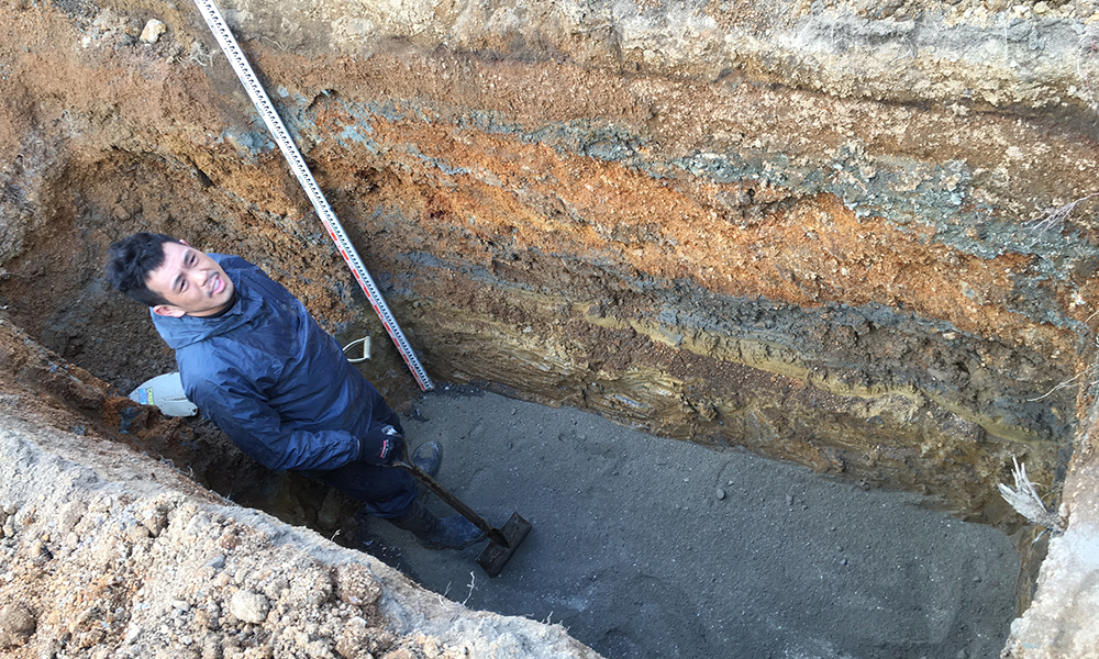 深さと、掘った穴の底部を確認します。